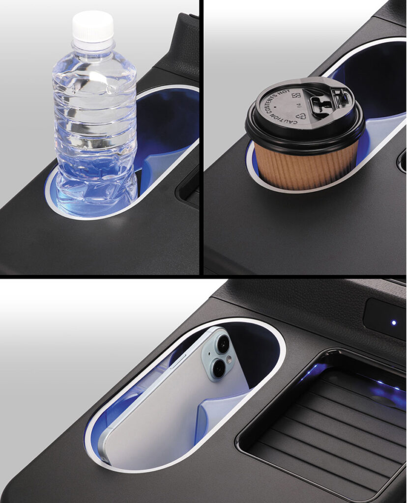 「N-BOX専用コンソールボックスプラスイルミ(CX541K)」は、2025年3月に発売した「N-BOX専用コンソールボックス(NZ864)」に車内をスタイリッシュに彩るイルミネーション搭載モデルとなる。ドリンクホルダーは、缶コーヒーから太いペットボトルまで幅広く対応。未使用時は、小物やスマートフォンの収納としても活用できる。また、ドリンクホルダー部は、クリアパーツを採用し、眩しすぎないやわらかな光を演出。夜間でも使いやすい視認性を確保。容量約4Lのゴミ箱は、フタが自動で開閉する電動ユニットを搭載し、ゴミ捨て口上部のセンサーに手をかざすだけで開閉できる。製品サイズは、幅279㎜×高さ235㎜×奥行き385㎜、重量1720g。