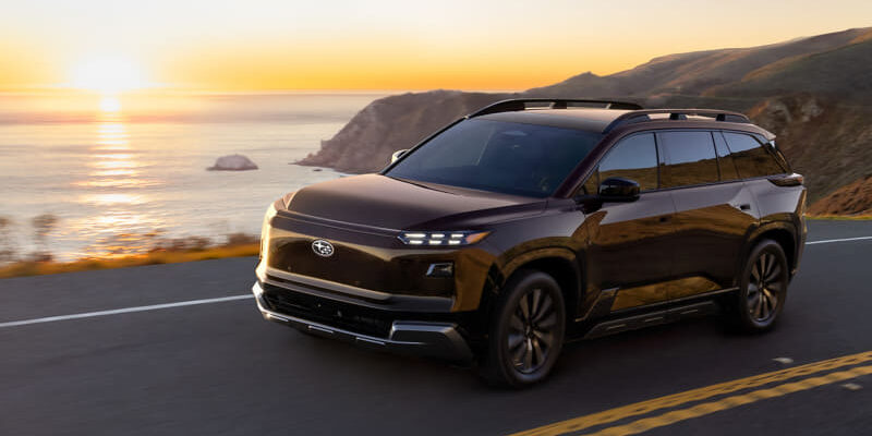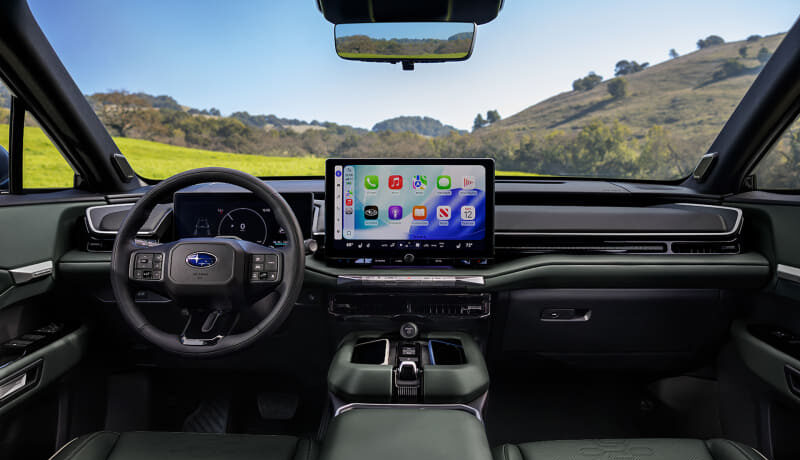 バッテリーは、用途やライフスタイルに応じて選択できるよう77.0kWhと、95.8kWhの2種類を設定。95.8kWhバッテリー搭載モデルは、スバルのBEVラインアップ最大のボディサイズでありながら約300マイル以上の航続距離を実現。また、バッテリープレコンディショニングを採用し、バッテリーを充電に最適な温度とすることで、充電量10%~80%までの急速充電時間を約30分としたほか、充電ポートには、北米充電規格(NACS)を採用。走行性能は、前後に高出力モーターを搭載したことにより、システム最大出力420PSを実現。BEVならではのレスポンスよくトルクを発生させるモーター特性を活かしたリニアで伸びのある加速を両立。また、サスペンションや電動パワーステアリングのセッティングおよびAWD制御には、スバルが培ってきた技術を活かすことで、ドライバーがより意のままに操れる走りを実現している。