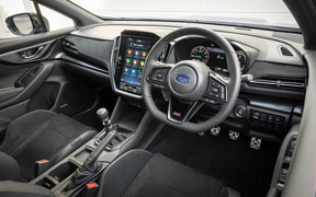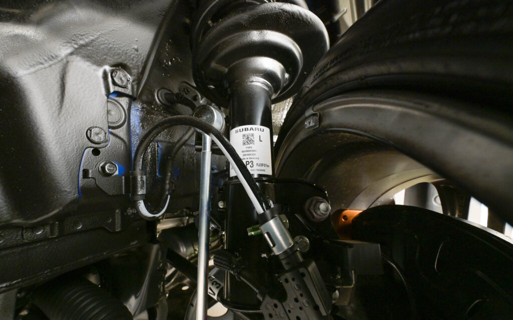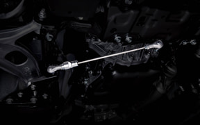 『WRX STI Sport♯』は、現行『WRX』の日本仕様として初めてとなる6速MTの搭載。今回、新開発した右ハンドルのMT車専用のフレキシブルドロータワーバーは、ストラットタワーを内側に引き込むプリロードをかける機能を持ち、車体構造の遊びを抑えて荷重伝達の遅れを改善する。また、床下やリアバンパー内側にもフレキシブルドロースティフナーを搭載し、操舵の切り始めにおける応答性を向上。足まわりについては、タイヤを245/40R18から245/35R19にインチアップし、マットグレイのアルミホイールを採用。また、スポーティにチューニングされたZF製電子制御ダンパーやブレンボ製18インチフロント対向6ポット&リア対向2ポットのブレーキキャリパーを装備。サスペンションは、ノーマル、コンフォート、スポーツの3モードを持つ電子制御式で、ブレーキには前後ドリルドローターを組み合わせている。加えて、STIがレースで培ったパーツを架装することで、軽快でスポーティな走りを実現している。