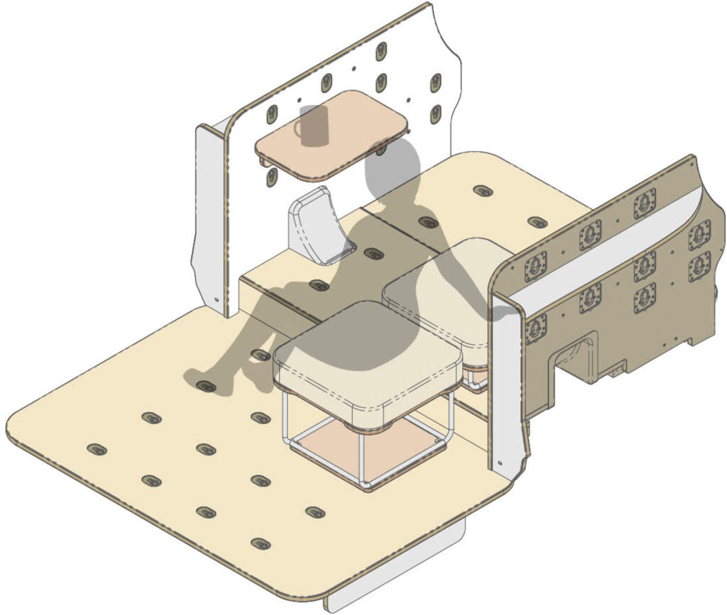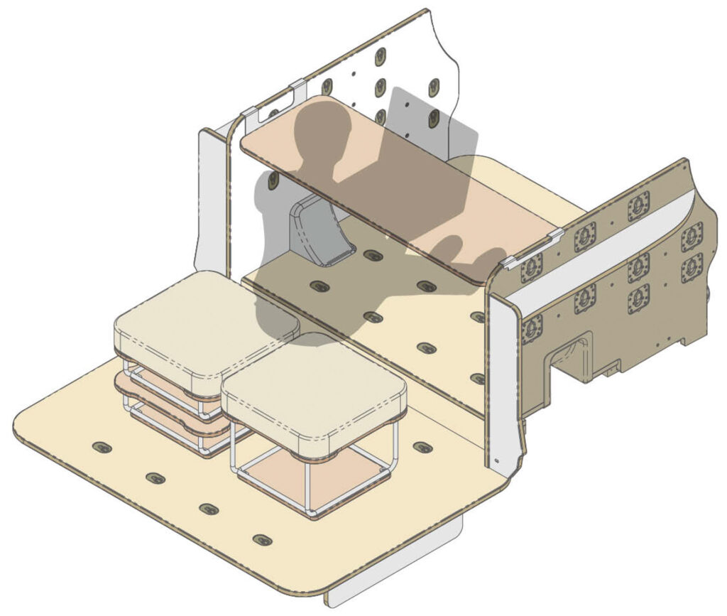 新設定の“JUNO”は、「Z」グレード(ハイブリッド車)をベースに採用。室内は、販売店オプションとして単品で購入可能な「家具モジュール」を着脱可能にするために、後席(2列目)やフロア・ラゲージのカーペットを取り外し、家具モジュール取付構造を組み込んだ専用トリム・フロアを取り付けた。そこに着脱可能な「家具モジュール」を組み合わせることで、ユーザー専用の空間を作ることを可能。家具モジュールは、「ベースモジュール」「ベースモジュールラージ」「クッションモジュール」「サイドテーブル」「ワークテーブル」の5種を用意。架装メーカーパッケージオプションとして、「チル」「リフレッシュ」「フォーカス」「コンフォート」の4タイプが選択可能となっている。
