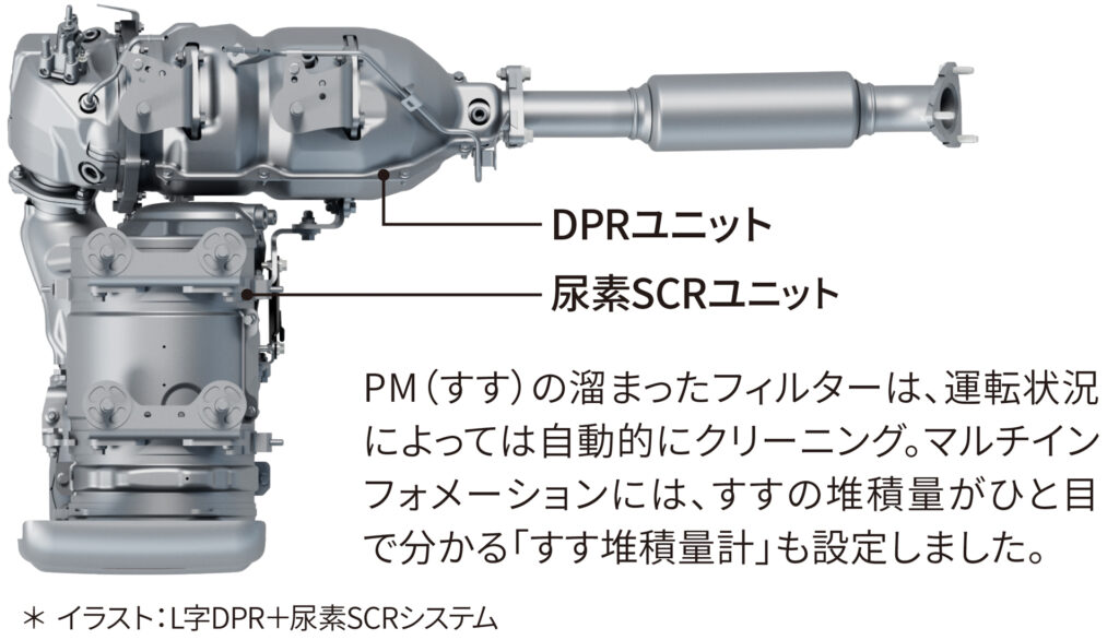 今回の『ダイナ カーゴ』2.0tシリーズの主な改良点は、バランス重視の新型4.0リッターディーゼルエンジン(N04C-YE)と、積載時の発進のしやすさと日常的な走行時の快適性をさらに追求した高出力タイプの新型4.0リッターディーゼルエンジン(N04C-YF)の採用。また、「N04C-YE」型ディーゼルエンジン搭載車(4WD仕様)と、「N04C-YF」型ディーゼルエンジン搭載車(2WD仕様)に電子制御6速AT(ECT)を設定したほか、DPR+尿素SCRシステムを採用したことで、平成28年(ポスト・ポスト新長期)排出ガス規制に適合させた。さらに、2025年度重量車燃費基準(JH25)も達成している。