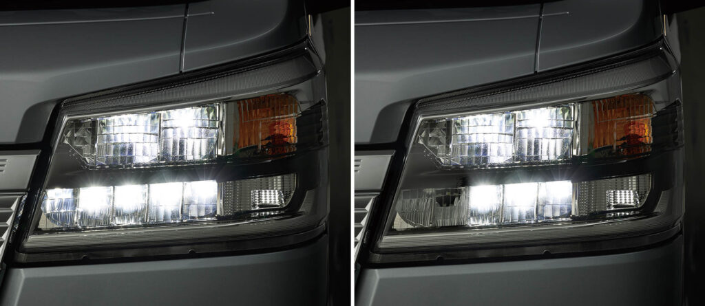 今回の一部改良では、全グレードに標準装備される先進予防安全機能「スマートアシスト」の交差点での検知範囲を拡張。交差点右折時に直進してくる対向車と、右左折時の対向方向から横断してくる歩行者を検知可能とした。また、「エクストラ」では、「LEDパック」の「LEDヘッドライト(ロー/ハイビーム・オートレベリング機能・LEDクリアランスランプ・オートライト付)」、「ADB(アダプティブドライビングビーム)」、「サイドビューランプ」を標準装備として装備を充実させた。