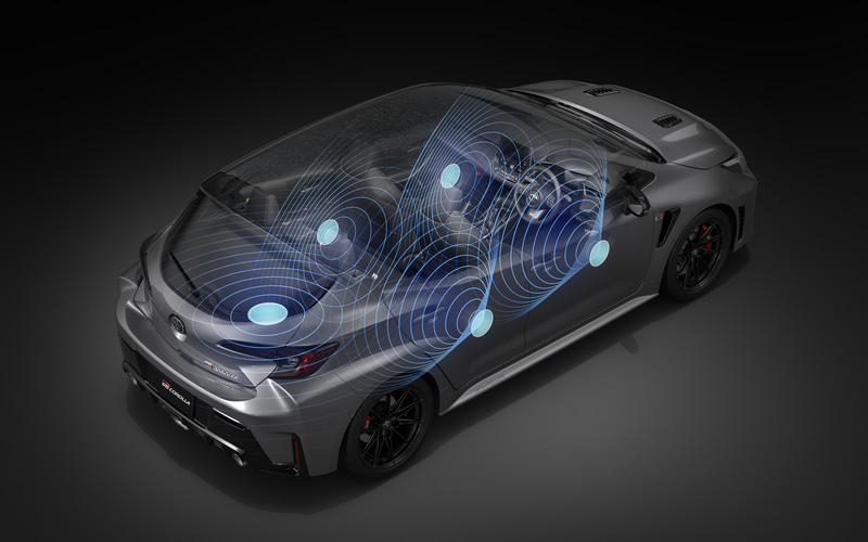 普段づかいの車内環境をより快適にするとともに、街中の運転でもエモーショナルなモータースポーツサウンドを楽しめるように「JBLプレミアムサウンドシステム(オプション)」の機能を充実させた。具体的には、ラゲッジスペースに新たに搭載したサブウーハーによって、オーディオサウンドはよりクリアで迫力のある音響を実現。従来から装備していたアクティブノイズコントロール(ANC)のチューニングも最適化し、エンジンなどの不快なこもり音を低減。さらに、「JBLプレミアムサウンドシステム」装着車には、新たにアクティブサウンドコントロール(ASC)を装備。これは、アクセルやシフト操作による車両の加減速や駆動力の変化に応じたスポーツサウンドをスピーカーから鳴動させるもので、ドライバーは直感的に車両の状態を把握できるようになる。さらに、アクセルオフ時には、モータースポーツサウンドの代表の1つであるバブリング音(ターボラグを低減するため、排気の工程で爆発を起こさせるアンチラグ制御が作動しているときに発生する排気音)を発生させる。ASCは、走行モードに合わせて3パターンのサウンドを設定しており、3段階の音量設定のほか「OFF」も選択できる(工場出荷時はOFF設定)。