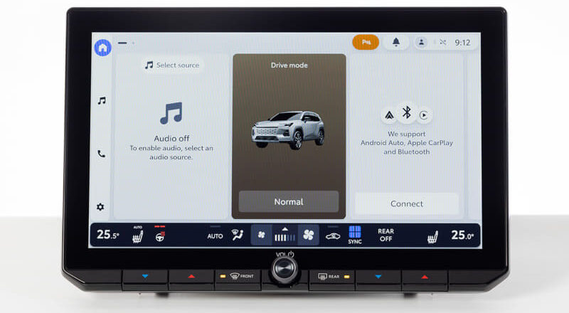 この製品では、最大12.9インチ(10.5インチも選択可能)の大型高精細ディスプレイを採用し、ナビゲーション・エアコン操作などを一体化。液晶ボンディング技術や省スペース設計により、高品質なデザインと操作性を両立。さらに、軽量化と省電力化を実現させている。