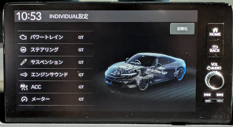 パワートレインは、ホンダ独自の2モーターハイブリッドシステム「e:HEV」にホンダ車として初となる制御技術「Honda S+ Shift」を採用。モーター駆動でありながら仮想の8段変速で、加減速時に緻密にエンジン回転数をコントロールし、あたかも変速機があるかのようなダイレクトな駆動レスポンスと、鋭い変速感を実現。また、ニュートラルギヤに入れたかのような減速度で走行する「コースティング制御」をホンダ車として初採用。D(ドライブ)状態から減速セレクターを「+」に操作することで、走行時、先の赤信号に向けて距離の長いアクセルオフをする場面など、再加速の必要性が少なくなり、ペダル踏み替えによる操作の負荷を軽減した。さらに、ドライブモードは「スポーツ」「GT」「コンフォート」の3つを備え、それぞれに「Honda S+ Shift」の制御を組み合わせることで6種類の走りを楽しめるほか、パワートレーン、ステアリング、サスペンション、メーター、エンジンサウンド、アダプティブクルーズコントロールなど、6項目をカスタマイズして、自分だけのドライブモードで走りを楽しめる「インディビジュアル」モードも設定している。