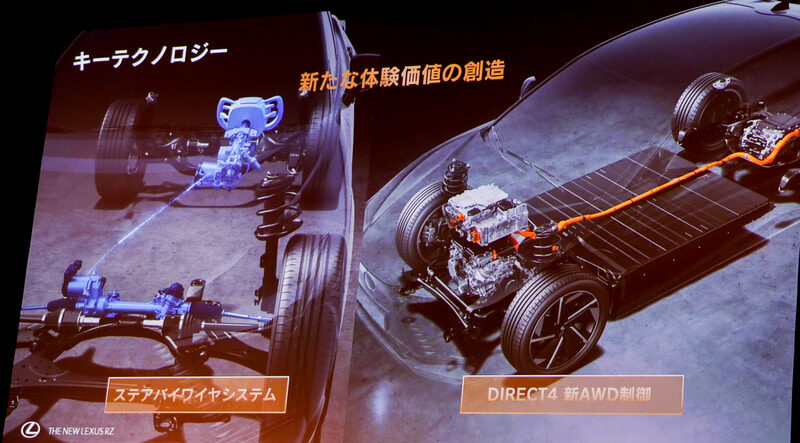 Lexus International アシスタントチーフエンジニアの寺田寧之氏は、「レクサスは、2005年の『RX 400h』の発売以来、ラグジュアリー市場における電動化の先駆者として、電動車の開発をけん引してきました。下山にある新たな開発拠点では、ドライビングの楽しさと本質的価値を追求するため、ハードウェアとコア技術の研鑽を続けています」と説明。続けて、「レクサスは電動化技術を磨き上げ、『ステア・バイ・ワイヤ・システム』や『ダイレクト4』といった新技術に挑戦し続けることで、ハードウェアとソフトウェアの融合によるまったく新しいドライビング体験の提供を目指している。また、開発の柱に“ナチュラルな操作性”“ドライビングの楽しさ”“BEV基本性能の追求”の3つを掲げ、まったく新しい体験を提供する車両として追及。静粛性と快適性を維持しながら、航続距離、充電制御の向上、プラットフォームの改良によるバッテリの大型化も実施したほか、、コンパクトなBEVパワートレーンの低重心化により、すべてのドライビング体験を高めることに成功したとしている。