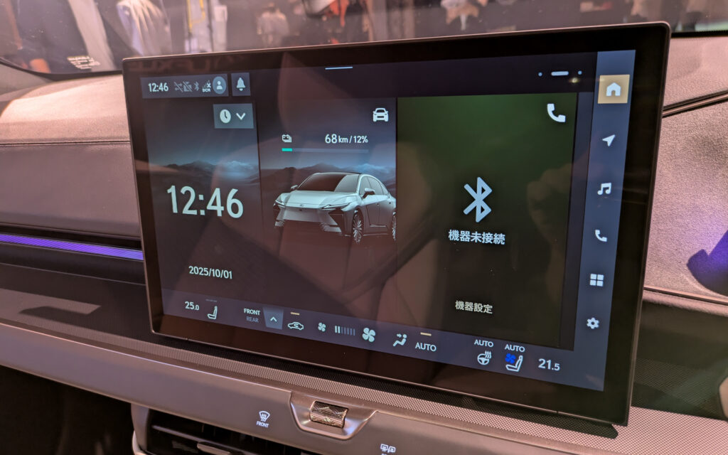 加えて新型『ES』は、レクサスの目指す「time in design」の概念をイルミネーション、音楽、マルチメディア画面、空調(フレグランス込み)、シートベンチレーション/ヒーターを連動させ、多感覚を刺激する空間と演出で魅了し、レクサスならではのパーソナライズされた体験価値を提供する次世代機能「センサリーコンシェルジュ」を初搭載する。ユーザーの気持ちに寄り添える3つのモードが用意されるが、日本への導入は法規の認証などが必要なため、まだ先になるとのこと。ただ、イベントでは、中国仕様で実際に体感できた。