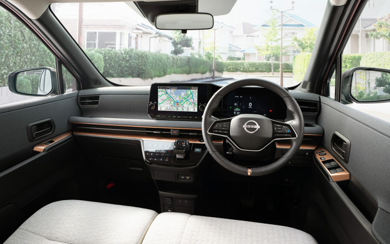 今回のマイナーチェンジでは、「サクラならではの魅力をさらに際立たせる」として外観デザインを刷新。フロントフェイスには、ボディカラーと同色のカラードグリルを採用し、カッパー色があしらわれた新デザインのフロントバンパーをアクセントとして組み合わせた。また、ボディカラーには、「水面乃桜-ミナモノサクラ-」を日産として初採用。水辺に咲く桜が水面に映る情景を映しこんだ、上質感と華やかさをより際立たせる落ち着きのある色合いに仕上がっている。