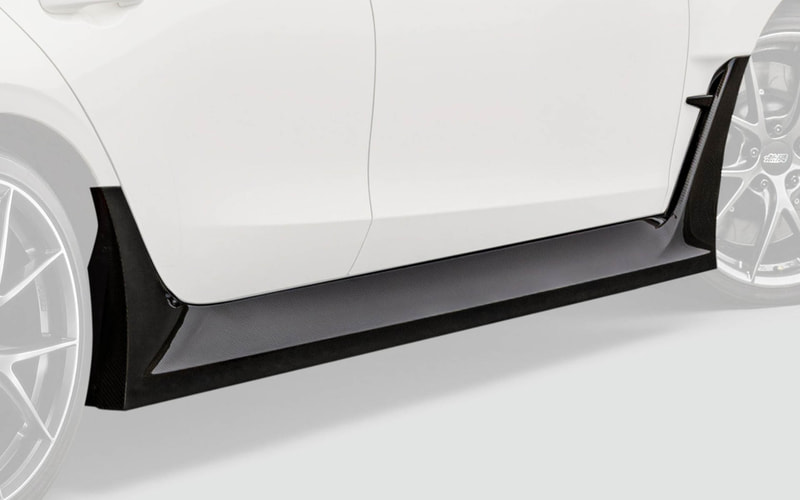 サイドには、ダウンフォースの獲得と軽量化に寄与するカーボンサイドスポイラーを設定。カーボンフロントバンパーロアスポイラーとカーボンリアバンパーディフューザーに追従した張り出しを持たせることで、レーシーなサイドビューを演出。CFRP製で約2.0kgの軽量化を実現。標準装備サイドスポイラーより約24.5mmダウンとなる。