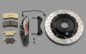 パフォーマンスパーツでは、スポーツチタンエキゾーストシステムを新たに設定。フロントパイプから専用開発を行ないパイプ径を拡大することで中間トルクを向上するとともに、基本素材にチタン、フロントパイプにはステンレスを採用し、フィニッシャをセンター1本出しとすることで、純正比約8.75kgの軽量化を実現。ブレーキでは、国際サーキットでの使用を想定したハイパフォーマンスブレーキシステムを新たに設定。ブレーキへの負荷が高いサーキットで、900℃近いブレーキローター温度での走行テストを繰り返し行なって開発し、ブレーキタッチの剛性感向上と高い制動力を実現。