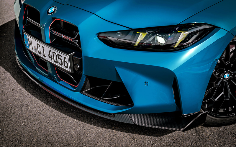 今回の限定車『M3 CSツーリング』には、ボンネットやキドニーグリル、エアインレット、ドアミラーキャップ、ディフューザーなどにCFRP(炭素繊維強化プラスチック)を採用して軽量化を図り、ベース車両の「M3 Competition M xDriveツーリング」から約20kgの軽量化。ボディサイズは、全長4805㎜×全幅1915㎜×全高1445㎜、ホイールベース2855㎜。車両重量は、1840kg。
