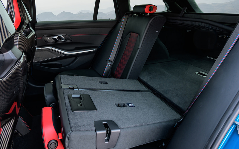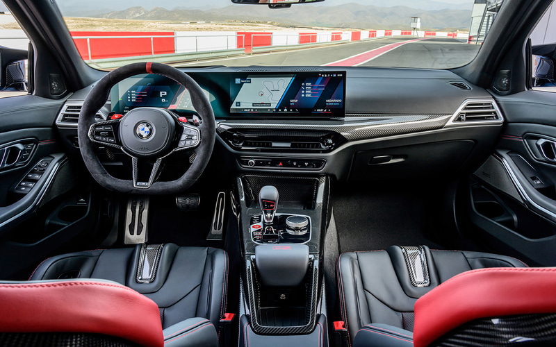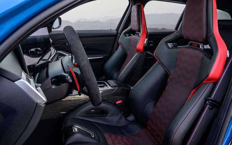 インテリアは、センターマーク付きのMアルカンターラステアリング、Mカーボンファイバートリム、専用CFRP製センターコンソール、前席にMカーボンバケットシートなどを採用。また、リアシートには、大人3名が座れるスペースを確保している。