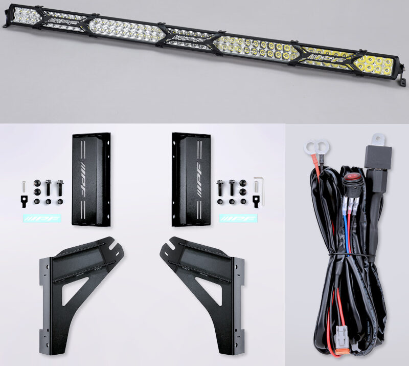 なお、IPFのLEDライトバーは、「競技用」のため、点灯した状態で公道走行はできない。また「作業灯」としての取り付ける場合は、運転席で点灯操作ができないことが取り付け時の条件となり、点灯スイッチを明らかに操作できない位置(エンジンルームなど)に取り付ける必要があるほか、作業灯も走行中の点灯は禁止となっている。